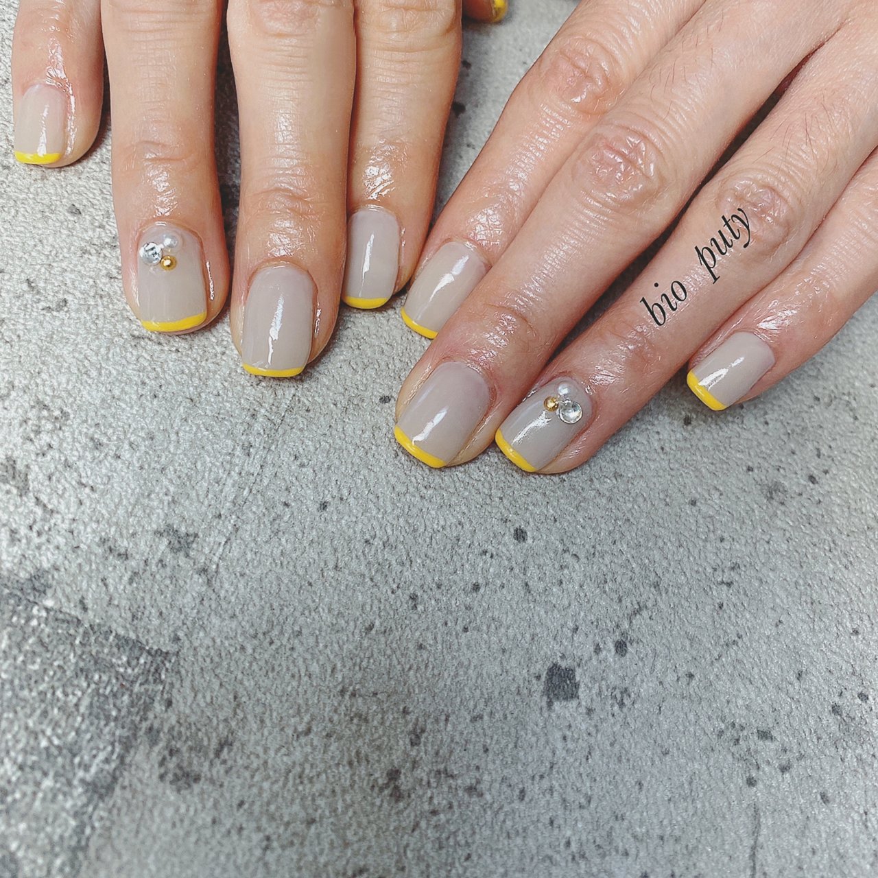 イエロー グレー ネイル フット